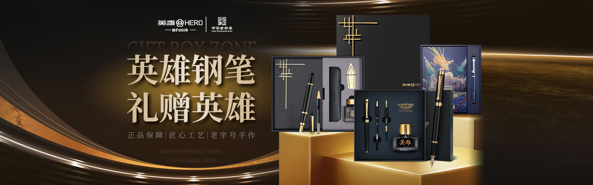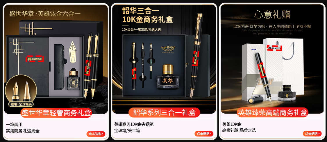 英雄(HERO)钢笔臻荣【10K金尖】高端轻奢墨水礼盒 臻系列送男士礼物 领导老师商务签字笔 黑金色 赠品